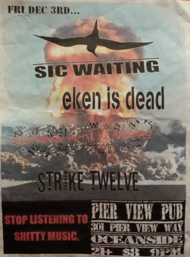 I think my favorite show we played was in Oceanside at Pier View Pub. We played with Sic Waiting, Being Jared and Eken is Dead. That was a blast!