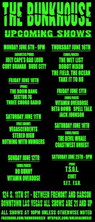 I posted an ad on Craigslist about me being a pop-punk guitarist that recently moved back to Vegas and that I was looking for people to play with. Mikey [Law, guitar] answered my post because I included Bigwig as one of my influences. Since he was from Bigwig’s hometown in Jersey, he was interested.