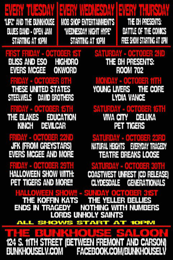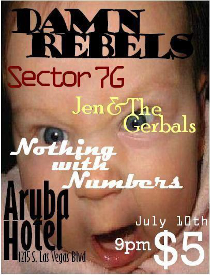 “Not one of these guys is from Vegas. Lucky enough to have met each other in 2008, Nothing With Numbers has produced powerful and energetic heavy music. You never know what to expect for a live performance, as their set can quickly change pace and intensity. Not one thing about this band is common, they are the opposite of genre peaceable and all 5 members share love for kittens.”