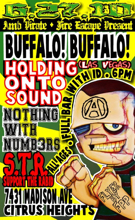 Sean called me and asked if I owned a bass. At the time I didn’t, but my girlfriend did. He asked if I would be interested in jamming with this band he knew called Nothing with Numbers and that it would be a package deal for them, gaining two members at the same time. I said I was in, having never played bass in a band before. Sean sent me their Myspace link to check out. I couldn’t believe how fast and transitional everything was. Plus, they had influences like Bigwig and Strung Out. I had never met anybody else that listened to those bands.