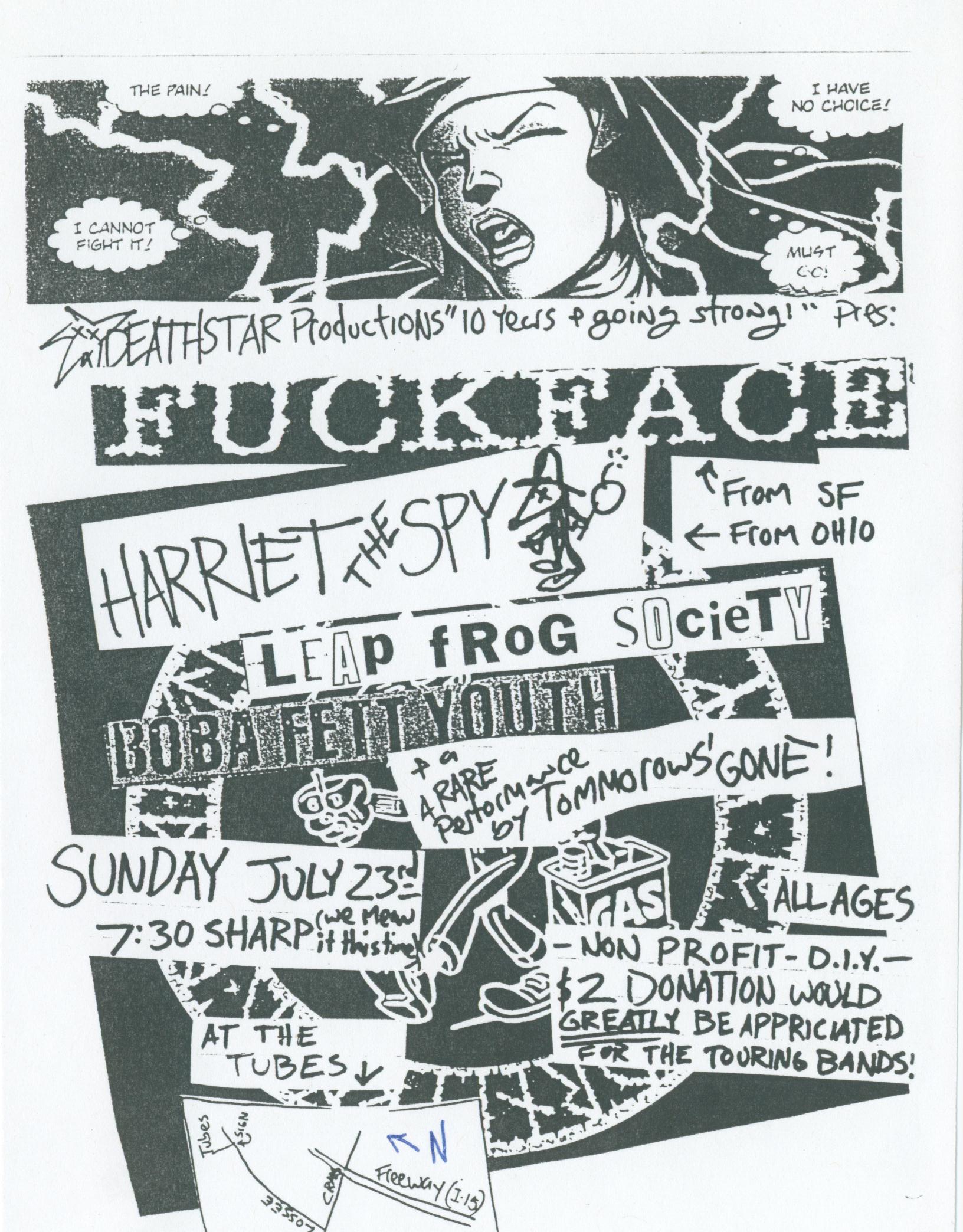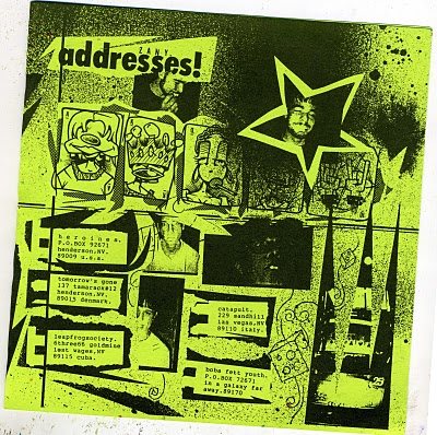 The details regarding each of the three compilations that featured TG songs are also a bit murky, but  the first was probably the Bucky Records 7” called My Parents Went to Las Vegas and All They Bought Me Was This Fucking 7″. Bucky Records was the brainchild of Boyde Wenger, also from the LV band Boba Fett Youth, and I was pretty stoked when he asked us to be a part of the record (we gave him the song “Three Thirty-Three”). Boyde and I became fast friends as not only was TG and BFY playing a lot of shows together, but we also worked together for a while throwing boxes around on the graveyard shift at a company called RPS.  As a band, we were also down with the other folks featured on the compilation from various encounters, and while there were other local bands playing a style of punk/HC very similar to what we were doing in TG, our ideals left us aligned more with the crust punks, pop-punks, and random weirdos that were involved with the Bucky comp. Too bad the record was mastered at the wrong speed, because sonically and visually (artwork by Greg Higgins) it was a really cool and diverse representation of the Vegas scene circa 1995/1996.
